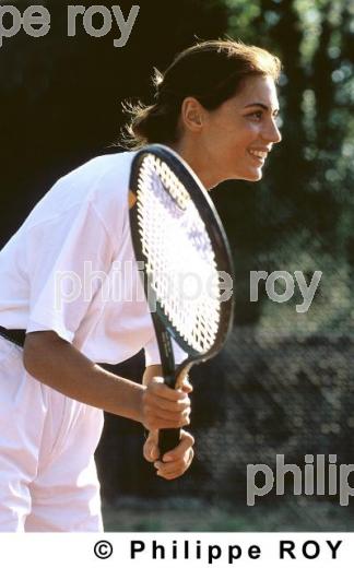 TENNIS, SPORT ET LOISIR, FRANCE - Jeune femme jouant au tennis - [autorisation nécessaire]