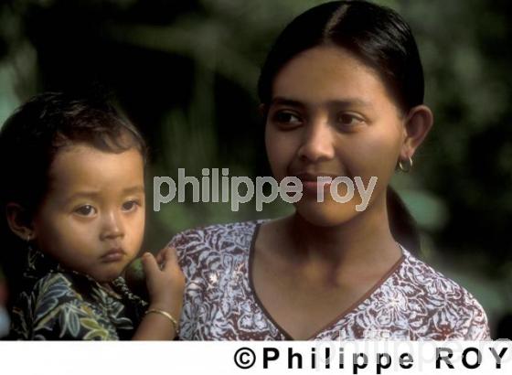 MERE ET ENFANT, POPULATION BALINAISE, REGION BULELENG, BALI, INDONESIE - Portrait d'un jeune femme et de son enfant - Munduk - Buleleng - Bali - ID - Indonésie