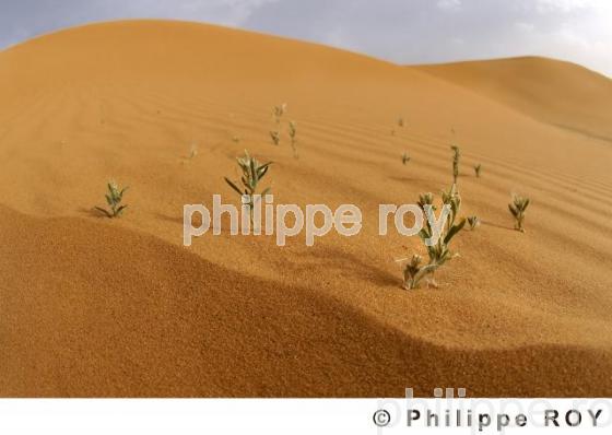 VEGETATION, DESERT DE L'AWBARI, UBARI, FEZZAN, SAHARA, REGION WADI ASH SHATI, LIBYE, AFRIQUE NORD. - Plante grasse, Mer de sable de "Awbari" (Ubari), au Nord de Sebha (Sabha). - Birak - LY - Libye - [pas d'autorisation nécessaire].