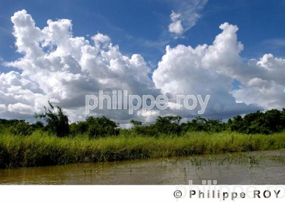 L' ORENOQUE, CIUDAD BOLIVAR, PROVINCE BOLIVAR, VENEZUELA . - Rive de l' Orenoque près de Ciudad Bolivar et ciel de nuages ( cumulus). - Ciudad Bolivar - VE - Venezuela. - [pas d'autorisation nécessaire]