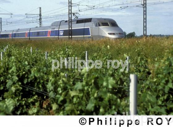 TRANSPORT FERROVIAIRE, LIBOURNE, GIRONDE, AQUITAINE, FRANCE - Train à grande vitesse (TGV) dans le vignoble bordelais TGV Atlantique - Libourne - 33 - Gironde - [Autorisation nécessaire pour publicité]
