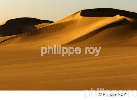 DUNE, ERG, DESERT LIBYEN, AS SARIR, CYRENAIQUE, REGION AL KUFRAH, LIBYE, AFRIQUE NORD. - Paysage de dunes ( erg, sif) dans le désert libyen (désert lybique) près de Jalu. Soleil couchant. - As Sarir - LY - Libye - [pas d'autorisation nécessaire]