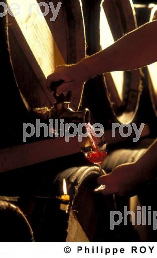 SOUTIRAGE BARRIQUE DE VIN, VIN DE BORDEAUX, GIRONDE, FRANCE. - Vinification en bordelais. Soutirage à la bougie . - Vertheuil - 33 - Gironde - [pas d'autorisation nécessaire]