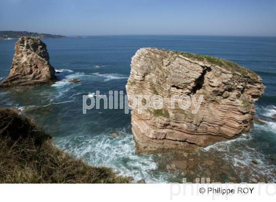 POINTE SAINTE ANNE, ROCHERS JUMEAUX, HENDAYE, PAYS BASQUE, PYRENEES ATLANTIQUE, AQUITAINE, FRANCE - Falaise de la Pointe sainte Anne et les rochers Jumeaux. Sentier du littoral . - Hendaye - 64 - Pyrénées Atlantique - [pas d'autorisation nécessaire]