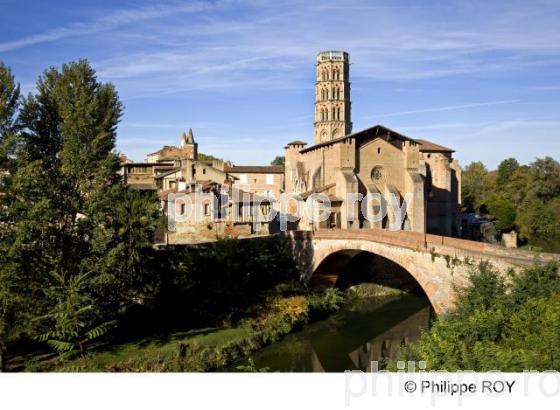 CATHEDRALE, PONT LAJOUS, VILLAGE, RIEUX VOLVESTRE, RIVIERE ARIZE, VOLVESTRE, HAUTE GARONNE, MIDI PYRENEES, FRANCE - Le village, la cathédrale et le pont de Lajous sur la rivière Arize. - Rieux Volvestre - 31 - Haute Garonne - [ pas d' autorisation nécessaire]