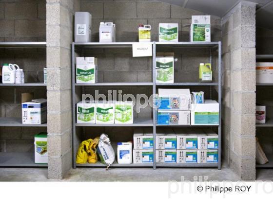 ETAGERE, STOCKAGE, PRODUIT, LOCAL PRODUITS PHYTOSANITAIRES, LYCEE AGRICOLE , CHATEAU DILLON, BLANQUEFORT, GIRONDE, AQUITAINE, FRANCE - Etagères de stockage des produits dans le local de stockage de produits phytosanitaires. - Blanquefort - 33 - Gironde