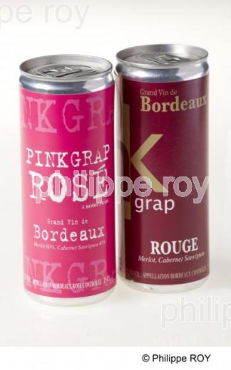 CANETTE DE VIN , CONDITIONNEMENT, ALUMINIUM, BORDEAUX, GIRONDE, AQUITAINE, FRANCE - Conditionement de vin de Bordeaux en canette aluminium . Vin rouge, Vin rosé. - Bordeaux - 33 - Gironde - [autorisation nécessaire]