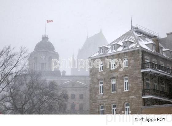 CHUTE DE NEIGE SUR LESEMINAIRE DES JESUITES, ACTUELLE UNIVERSITE LAVAL , DOME DE LA POSTE CENTRALE ET CHATEAU FRONTENAC , EN HIVER, VILLE DE QUEBEC, PROVINCE DE QUEBEC, CANADA. - Québec - Québec - CA - Canada - [ pas d' autiorisation necessaire]