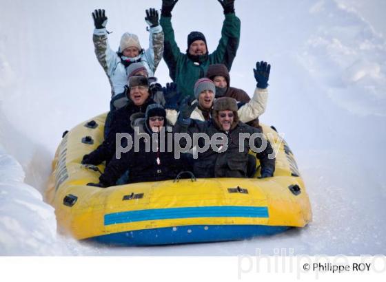 LA GRANDE GLISSADE EN RAFT SUR NEIGE, ANIMATION DU CARNAVAL DE QUEBEC, PARC DES CHAMPS DE BATAILLE, PLAINES D' ABRAHAM , EN HIVER, VILLE DE QUEBEC, PROVINCE DE QUEBEC, CANADA. - Québec - Québec - CA - Canada - [ autiorisation necessaire]