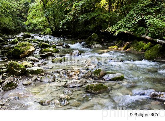 RUISSEAU DANS LA FORET DU LINDAR, LE CHATELARD, PARC NATUREL REGIONAL DU MASSIF DES BAUGES, SAVOIE (73), RHONE-ALPES, FRANCE