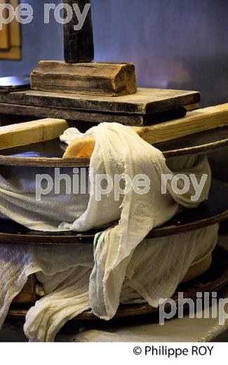PRESSEE DU FROMAGE AOC DE BEAUFORT DANS LE CHALET D'ALPAGE DE JEAN PIERRE BLANC, L'UN DES DERNIERS FROMAGERS DU VALLON DE TREICOL, MASSIF DU BEAUFORTAIN, SAVOIE (73), RHONE ALPES, FRANCE