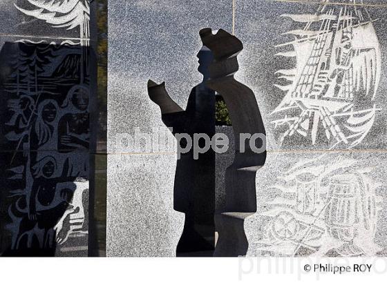 "LA RENCONTRE", MONUMENT EN HOMMAGE A JACQUES CARTIER, RUE JACQUES CARTIER, RIVES DE LA RIVIERE SAINT-CHARLES, CITE-LIMOILOU, ARRONDISSEMENT DE LA VILLE DE QUEBEC, PROVINCE DE QUEBEC, CANADA