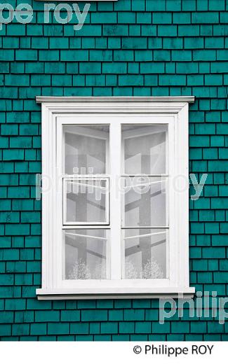 FENETRE D'UNE MAISON TRADITIONNELLE EN BOIS, LE TRAIT-CARRE, QUARTIER HISTORIQUE DE CHARLESBOURG, ARRONDISSEMENT DE LA VILLE DE QUEBEC, PROVINCE DE QUEBEC, CANADA