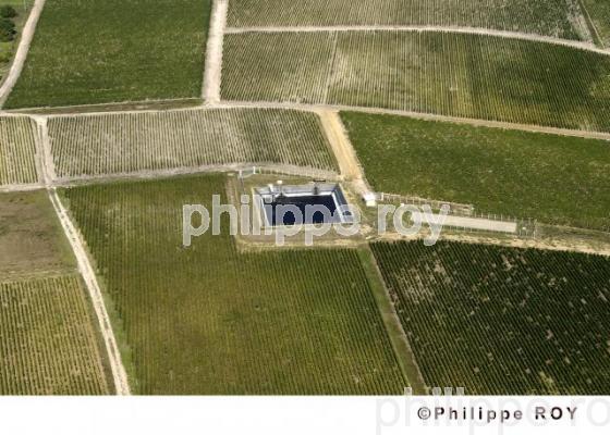 VIGNOBLE DU MEDOC , LAMARQUE , FRANCE. - Vue aérienne sur les parcelles et bassin de décantation de la station d' épuration d' une exploitation viticole. - Lamarque - 33 - Gironde - [pas d'autorisation nécessaire]