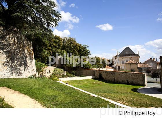 VESTIGE DE LA TOUR DU CAVALIER DE GUINFOLLE DANS LE PARC BARON AMENAGE SUR LE SITE DU CHATEAU FORT, ET HOTEL LEPINAY DE BEAUMONT, VILLE DE FONTENAY-LE-COMTE, VENDEE (85), PAYS DE LOIRE, FRANCE