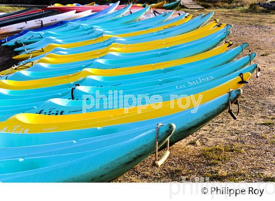 CANOES A LA BASE NAUTIQUE DES SALINES, DANS LE MARAIS D'OLONNE, ANCIENS MARAIS SALANTS, OLONNE-SUR-MER, VENDEE (85), PAYS DE LA LOIRE, FRANCE