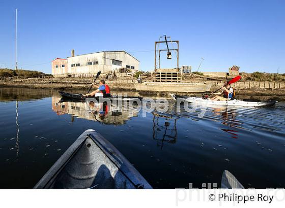 PROMENADE EN KAYAK SUR LA RIVIERE AUZANCE, CHENAL DE LA GACHERE, ET CABANE D'OSTREICULTEUR, DECOUVERTE DU MARAIS D'OLONNE AVEC KAYAK PECHE PASSIONS, OLONNE-SUR-MER, VENDEE (85), PAYS DE LA LOIRE, FRANCE