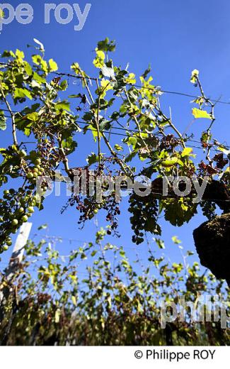 DEGAT DE GRELE SUR VIGNE , VIGNOBLE ENTRE DEUX MERS, LE 2 AOUT 2013, GENISSAC, GIRONDE, AQUITAINE, FRANCE.