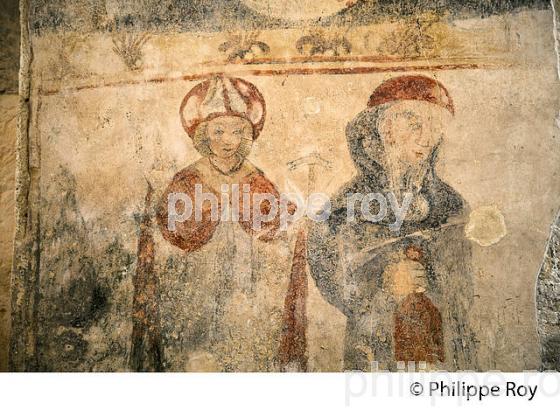 FRESQUE DANS LE CHOEUR DE LA CHAPELLE SAINT MARTIN, ANCIENNE EGLISE ROMANE ELEVEE ENTRE LE 12 EME ET LE 14 EME SIECLE, VILLAGE MEDIEVAL DE LIMEUIL, AU CONFLUENT DE LA VEZERE ET DE LA DORDOGNE, PERIGORD NOIR, DORDOGNE, AQUITAINE, FRANCE