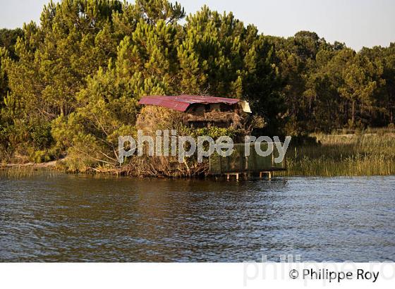 TONNE POUR LA CHASSE AU GIBIER D' EAU SUR L' ETANG DE CAZEAUX ET DE SANGUINET, A SANGUINET, LANDES, AQUITAINE, FRANCE.