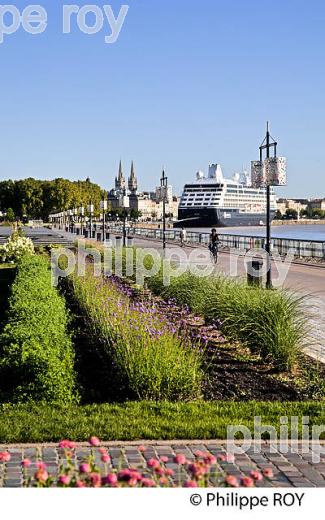 BATEAU DE CROISIERE ET AMENAGEMENT DES QUAIS DE LA GARONNE, PORT DE LA LUNE, VILLE DE BORDEAUX.