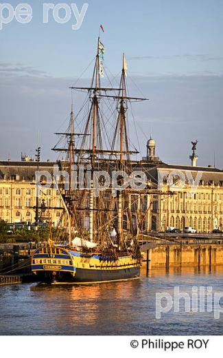L' HERMIONE , FACADE DES QUAIS, LA GARONNE, PORT DE LA LUNE, VILLE DE BORDEAUX, GIRONDE.