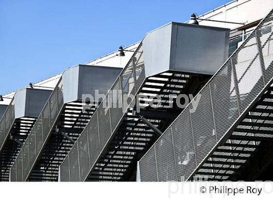 ESCALIERS DE SECOURS EXTERIEURS DU HANGAR 14, CENTRE DE CONGRES , LE LONG DU QUAI DES CHARTRONS, EN BORD DE GARONNE , QUARTIER DES CHARTRONS, CENTRE HISTORIQUE DE LA VILLE DE BORDEAUX, GIRONDE, AQUITAINE, NOUVELLE AQUITAINE, FRANCE.
