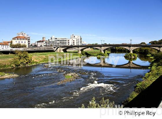 L' ADOUR ET LE VIEUX PONT , VILLE DE DAX, LANDES.