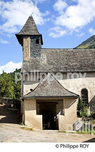 CHAPELLE ROMANE D'OCRUN, VILLAGE JACQUAIRE DE BEDOUS, VALLEE D' ASPE, BEARN, PYRENEES ATLANTIQUES.
