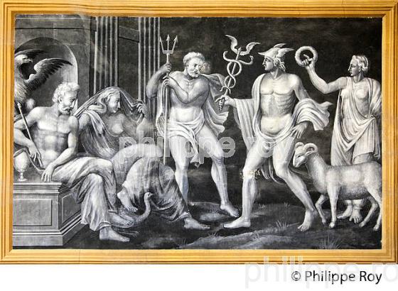 FRESQUE MURALE DE LA GALERIE DES SACRIFICES , CHATEAU D' ANCY LE FRANC , 16 EME SIECLE, STYLE RENAISSANCE , VALLEE DE L' ARMANCON, YONNE, BOURGOGNE, FRANCE.