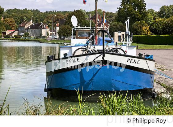 TOURISME FLUVIAL, PORT DE TANLAY, CANAL DE BOURGOGNE, VALEE DE L' ARMANCON, YONNE, BOURGOGNE.