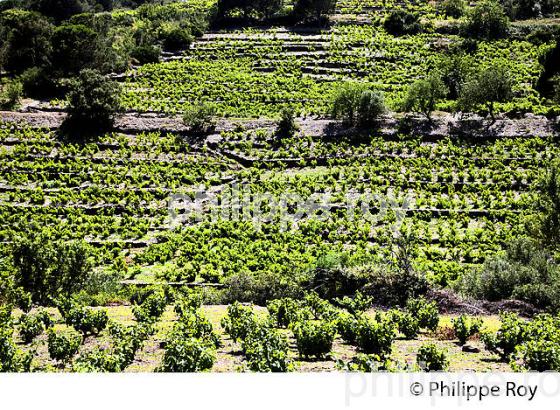 ROUTE DU VIGNOBLE DE BANYULS A COLLIOURE, COTE VERMEILLE, MASSIF DES ALBERES, ROUSSILLON, CATALOGNE.