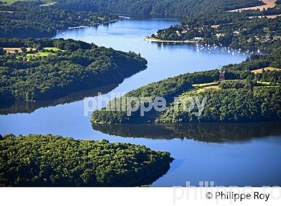 LA BASE DE LOISIRS DE CHAMBON, ET LE LAC DU BARRAGE HYDROELECTRIQUE D' EGUZON , COMMUNE D' EGUZON CHANTOME, VALLEE DE LA CREUSE, VALLEE DES PEINTRES, LIMOUSIN, MASSIF CENTRAL, INDRE, REGION CENTRE VAL DE LOIRE, FRANCE.