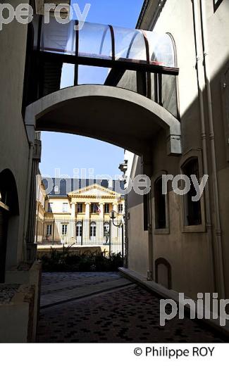 PASSAGE DU CONSEIL DEPARTEMENTAL DES LANDES ET LA PREFECTURE, 19 EME SIECLE, STYLE NEOCLASSIQUE, RUE VICTOR HUGO, QUARTIER HISTORIQUE DE LA VILLE DE MONT DE MARSAN, LANDES, NOUVELLE AQUITAINE, FRANCE.