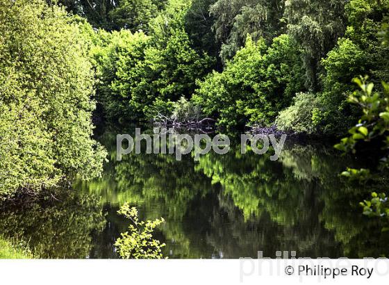 LES RIVES DE LA DORDOGNE ET L' ILE DE CALYPSO, AU PIED DU VILLAGE DE CARENNAC, CHEMINS DE SAINT JACQUES, VIA ARVERNA, VALLEE DE LA DORDOGNE LOTOISE, CAUSSE DE GRAMAT, HAUT QUERCY, LOT, OCCITANIE, FRANCE.