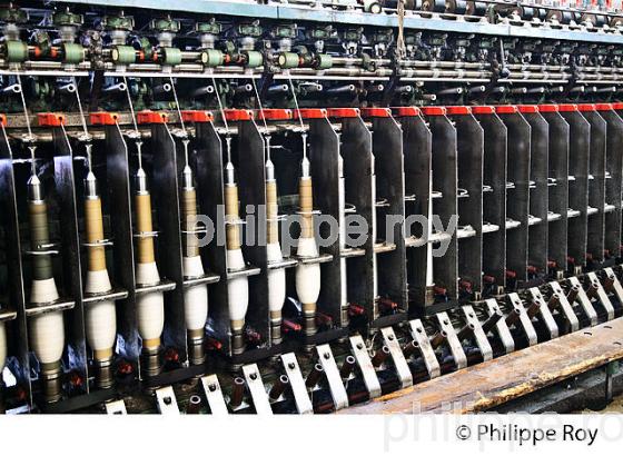 MACHINE A FILER LA LAINE , FILATURE TERRADE, CITE MEDIEVALE DE FELLETIN, PLATEAU DE MILLEVACHES , PARC NATUREL REGIONAL DE MILLEVACHES , CREUSE, LIMOUSIN, NOUVELLE AQUITAINE, FRANCE.
