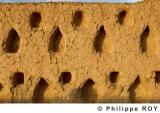ARCHITECTURE, MUR EN BRIQUE DE TERRE, GRANDE MOSQUEE, VILLAGE DE BANI, SAHEL, PROVINCE NAMENTENGA, BURKINA FASO, AFRIQUE - Architecture, détail construction en brique de terre séchée ( banco) de la grande mosquée dans le village de Bani. - Bani - BF...