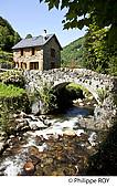 LE PONT ROMAN SUR LA RIVIERE ARAC , VILLAGE LE PORT, VALLEE DE L' ARAC, COUSERANS, PARC NATUREL REGIONAL DES PYRENEES ARIEGEOISES, ARIEGE, MIDI PYRENEES, OCCITANIE, FRANCE.