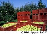 RECOLTE, POMMES, VERGER, AGRICULTURE, DORDOGNE, AQUITAINE, FRANCE - Récolte de pommes Golden - Caisses-palette en plastique et verger - - 24 - Dordogne - [Pas d'autorisation nécessaire] -
