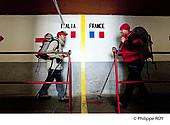 LIGNE DE FRONTIERE ENTRE LA FRANCE ET L'ITALIE, GARE DU TELECABINE DE LA POINTE HELBRONNER, MASSIF DU MONT-BLANC, CHAMONIX, HAUTE-SAVOIE (74), RHONE-ALPES, FRANCE [pas d'autorisation nécessaire]