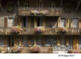 DETAIL D' HABITAT, LABASTIDE D ARMAGNAC, LANDES, AQUITAINE, FRANCE - Maison et fenêtre fleurie - Labastide d' Armagnac - 40 - Landes - [pas d'autorisation nécessaire]