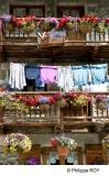 BALCON FLEURI, VILLAGE, LANSLEVILLARD, VALCENIS, DENT PARRACHEE, VALLEE, HAUTE MAURIENNE, MASSIF VANOISE, SAVOIE, RHONE ALPES, FRANCE - Balcon de résidence fleuri . Village de Lanslevillard , la Dent Parrachée, parc national de la Vanoise et la...
