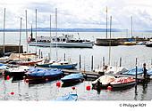 BATEAU D'EXCURSION TOURISTIQUE DE RETOUR AU PORT DE NEUCHATEL, LAC DE NEUCHATEL, CANTON DE NEUCHATEL, SUISSE, CONFEDERATION HELVETIQUE [pas d'autorisation nécessaire]