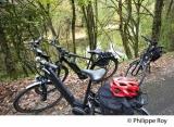 RANDONNEE EN VELO LE LONG DES GORGES DE L' AVEYRON, ROUTE DE VIEL FOUR, COMMUNE DE SAINT ANTONIN NOBLE VAL, VALLEE DE L' AVEYRON, TARN ET GARONNE , MIDI-PYRENEES, OCCITANIE, FRANCE.