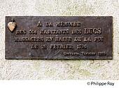 PLAQUE COMMEMORATIVE DU MASSACRE DES 564 VILLAGEOIS PAR LES COLONNES INFERNALES LORS DE LA GUERRE DE VENDEE, APPOSEE SUR LA CHAPELLE DU PETIT-LUC, LES LUCS-SUR-BOULOGNE, VENDEE (85), PAYS DE LOIRE, FRANCE [autorisation nécessaire]