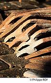 POSE DE TUILE A CROCHER SUR LITEAU, CHANTIER DE COUVERTURE EN TUILE CANAL , REALISE PAR LA SOCIETE SEBV, LUDON MEDOC, GIRONDE, AQUITAINE, FRANCE. [ autorisation necessaire ]