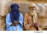 TOUAREG, DJEBEL, DESERT, SAHARA, PARC NATIONAL, TASSILI N' AJJER, DJANET, REGION ILLIZI, ALGERIE - Portrait de touaregs au repos contre les falaise en grès, lors d' une méharée , entre Essendilène ( Frison-Roche) et Djanet, dans le massif du...