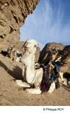 BIVOUAC, TREKKING, MEHAREE, DJEBEL, DESERT, SAHARA, PARC NATIONAL, TASSILI N' AJJER, DJANET, REGION ILLIZI, ALGERIE - Dromadaire de tête de méharée et sa selle , entre Essendilène ( Frison-Roche) et Djanet, dans le massif du Tassili N' Ajjer,...
