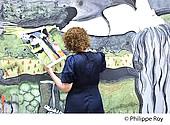 DELPHINE LONGERET, CARTONNIERE, REALISANT LE CARTON ECHELLE 1 POUR LE TISSAGE DE LA TAPISSERIE DES 150 ANSDE GEORGE SAND, ATELIER DES CARTONS DE LA CITE INTERNATIONALE DE LA TAPISSERIE, CITE MEDIEVALE DE AUBUSSON, PLATEAU DE MILLEVACHES , PARC...