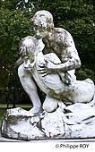 LA CHUTE DES FEUILLES, 1907, SCULPTURE DE JULIEN LORIEUX, PARC JEAN RAMEAU, ANCIENNE PEPINIERE DEPARTEMENTALE, DEVENUE JARDIN PUBLIC, CIRCUIT DE LA PROMENADE SCULTEE DANS LA VILLE, QUARTIER HISTORIQUE DE LA VILLE DE MONT DE MARSAN, LANDES,...
